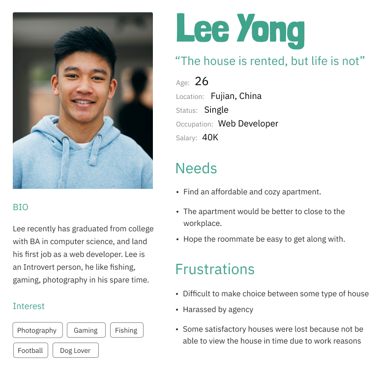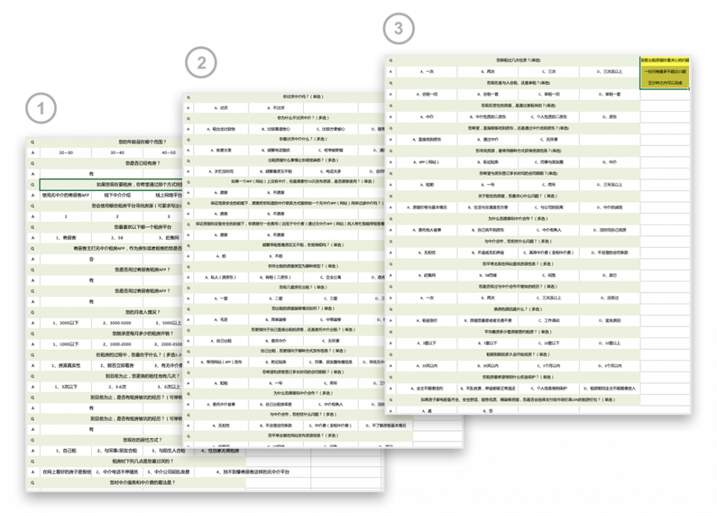 Based on the above secondary research, we focus on interviewing people in the 80s and 90s, and collect data from 30 users through either interviews or questionnaires. The questionnaire survey is conducted in two forms: online and offline. The content of the questionnaire Separately for the two roles of tenant and landlord, each survery could be finished within 5 min.